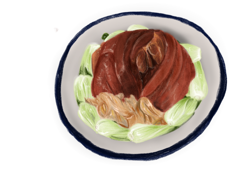滷汁濃郁滲入肉裡,筍乾吸飽湯汁,鹹香帶勁、解膩加分。